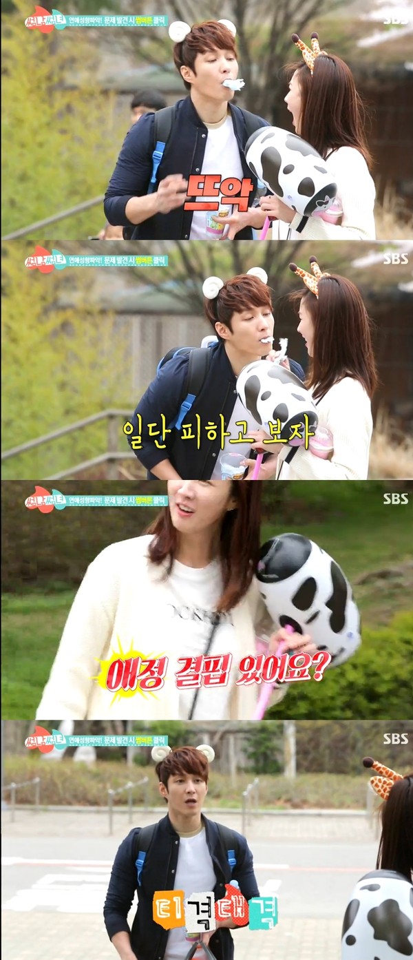 ‘썸남썸녀’심형탁과 이수경이 티격태격하는 10년차 커플의 모습을 보였다.19일 오후 방송된 SBS 예능프로그램 ‘썸남썸녀’4회에서는 강균성, 서인영, 심형탁, 이수경이 데이트를 하는 모습이 전파를 탔다.심형탁과 이수경은 동물원으로 데이트를 하러 갔다. 동물원에 도착한 심형탁은 이수경을 위해 솜사탕을 구입했고 장난기가 발동했는지 솜사탕을 입에 물었다. 이어 그는 이수경에게 입에 솜사탕을 문채 내밀었다.이를 본 이수경은 “애정결핍 있느냐”고 묻자 심형탁은 “애정결핍이 아니라 연인으로서 충분히 할 수 있는 스킨십이다”고 반박했다. 이어 이수경은 “사람들이 다 쳐다본다”며 “나랑 안 맞는 것 같다”고 단호하게 말했다.앞서 이수경은 스킨십을 시도하는 심형탁에게 “스킨십을 그렇게 좋아하지 않는다”고 밝혔던 것.이에 심형탁은 상대방과 문제점을 발견했을 시 누르라는 ‘썸버튼’을 눌렀다. 그러나 곧 서로 언제 그랬었냐는 듯 같이 도시락을 나눠 먹으며 화해한 모습을 보여주어 웃음을 자아냈다.