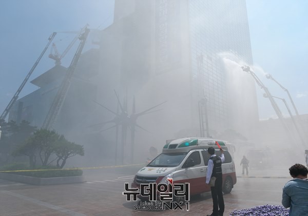 [포토] 초고층 화재대비 훈련 실시