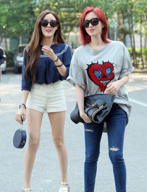 그룹 티아라 은정과 효민이 KBS 2TV '뮤직뱅크' 리허설에 참석하고 있다.