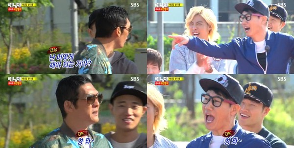 이날 게스트들은 '런닝맨' 멤버들 중 짝을 골랐다. 헨리는 유재석을, 엠버는 하하를, 강남은 김종국을, 닉쿤은 개리를 골랐다. 송지효와 이광수가 짝이 됐고, 박준형은 하는 수 없이 지석진을 선택했다.