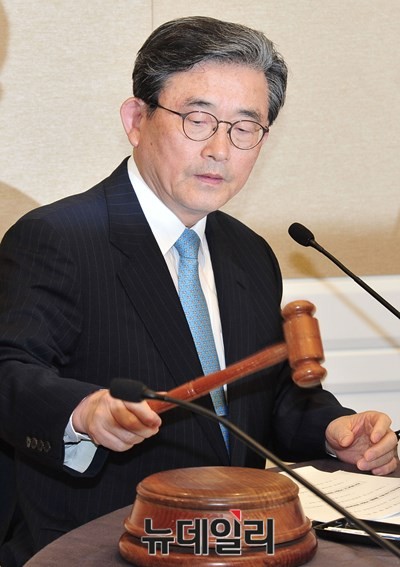 새누리당 이한구 상임전국위원회 위원장이 26일 오전 서울 여의도 국회 귀빈식당에서 열린 제6회 상임전국위원회에서 의사봉을 두드리고 있다.