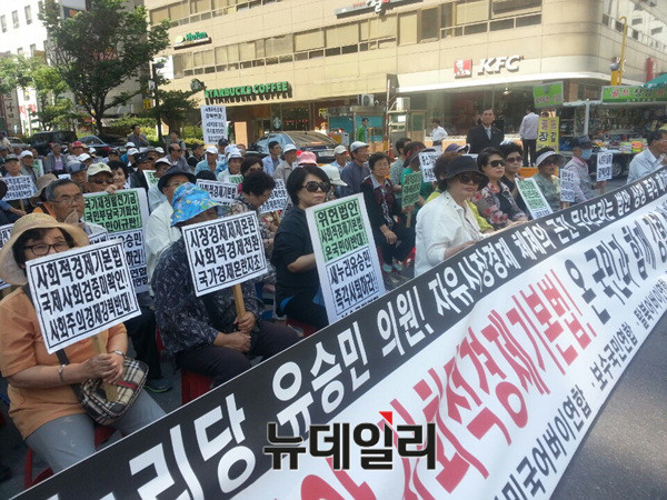 어버이연합은 이날 집회에서 “시장을 시장에 맡기지 않고 국가가 나서서 개입하겠다는 것은 독재의 부활이자 이미 존재가 부정된 공산주의 이념의 부활”이라며 “유승민 의원이 거창하게 내건 ‘사회적 경제’에서 ‘경제’는 흔적도 없이 사라지고 그 자리를 ‘정치’가 차지할 것”이라고 꼬집었다.