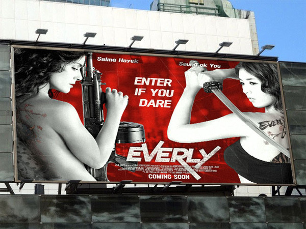 '킬 빌'의 기존 여전사 영화의 틀을 깨는 신선한 복수 액션 '에벌리'가 6월 4일 개봉을 앞두고 있는 가운데 해외 전광판에 배우 셀마 헤이엑과 유승옥이 함께 한 대결 장면이 포착됐다. 이에 유승옥의 할리우드 진출인지에 대한 의문이 커지고 있다.