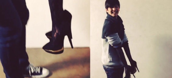 공개된 사진에는 하이힐과 망사 스타킹을 신은 여자의 발부분과 육성재의 운동화 발부분이 담겨 야릇한 상상을 하게 만들고 있다.