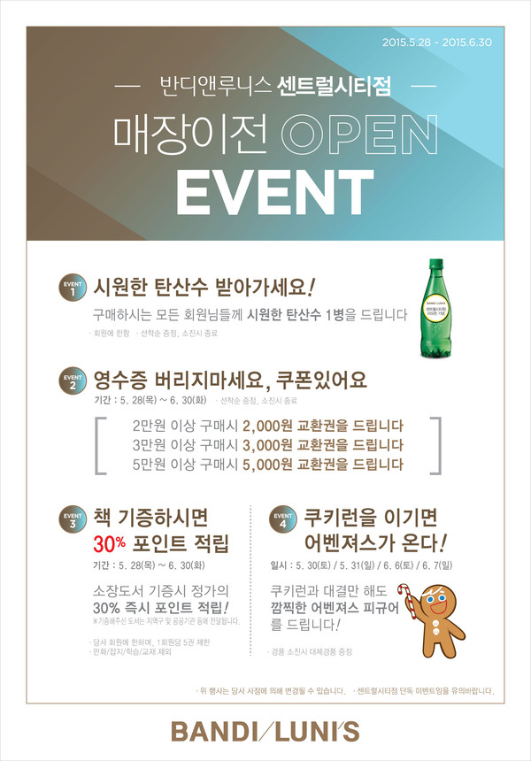이외에도 반디앤루니스 센트럴시티점에서 책을 구매하는 선착순 10만명에게 아웃백 센트럴시티점에서 사용할 수 있는 '오지치즈 후라이즈' 무료 쿠폰을 나눠준다.