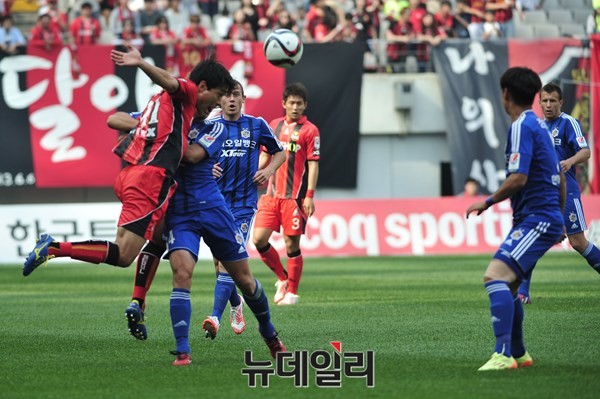 K리그 클래식 13라운드 FC 서울과 울산 현대의 경기가 31일 오후 마포구 상암동 서울월드컵경기장에서 열렸다. FC서울 선수들과 울산 현대 선수들이 볼 다툼을 하고 있다.
