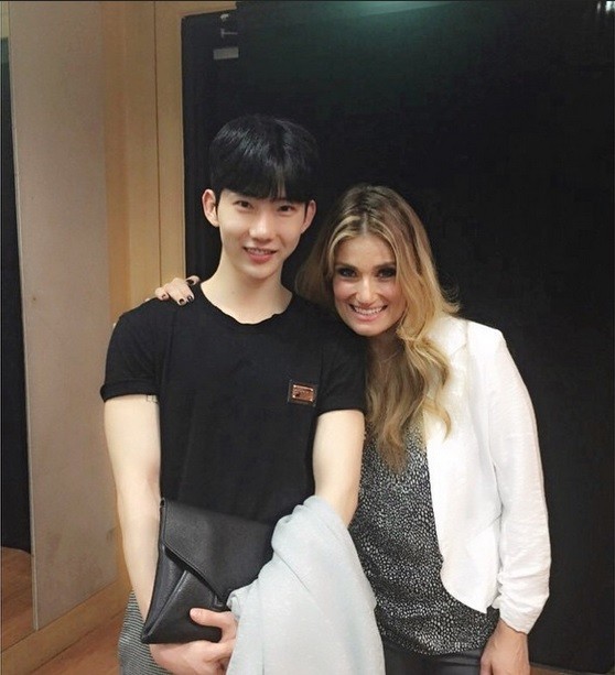 브로드웨이 뮤지컬 배우 이디나 멘젤과 조권이 다정하게 어깨동무를 한 사진이 화제다.