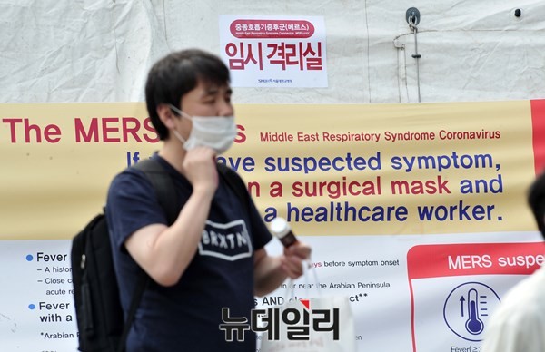 [포토] 마스크 쓰고 메르스 임시격리실 지나는 시민