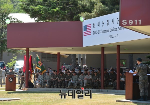 지난해 7월, 韓·美 양국이 합의한 전시 ‘한‧미 연합사단’ 편성식이 3일 경기도 의정부에 위치한 미군부대(Camp Red Cloud)에서 거행됐다.