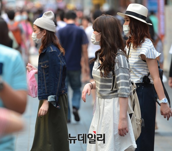 중동호흡기증후군 메르스 감염의심 환자가 600여명인 4일 오후 서울 명동 거리는 다소 한산한 분위기다. 마스크를 착용한 시민들과 관광객들을 쉽게 발견 할 수 있다.