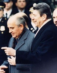 1981~5년 사이 줄기차게 진행된 레이건 대통령의 對蘇강경정책은 소련 지도부를 고민에 빠뜨렸다. 소련 지도부는 레이건과 상대할 인물로서 54세의 새로운 型의 지도자 고르바초프를 공산당 서기장으로 뽑았다. 고르바초프는 레이건의 작품이라고 보는 학자들도 있다. 고르바초프는 레이건의 압박에 대응하기 위해서라도 체제 개혁을 서둘러야 한다는 입장이었고, 동시에 레이건이 시작한 군비경쟁을 끝내어 소련경제의 내출혈을 막아야 한다는 입장이었다. 레이건-고르바초프 대화가 시작되었다. 고르바초프는 소련의 월남전으로 변한 아프가니스탄 전선에서 소련군을 철수시키고 싶어했다.