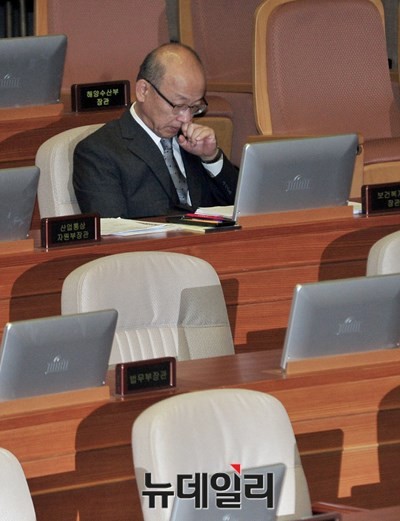 문형표 보건복지부 장관이 8일 오전 서울 여의도 국회 본회의장에서 열린 중동호흡기증후군(메르스) 관련 긴급 현안질의에 출석해 회의 시작을 기다리고 있다.