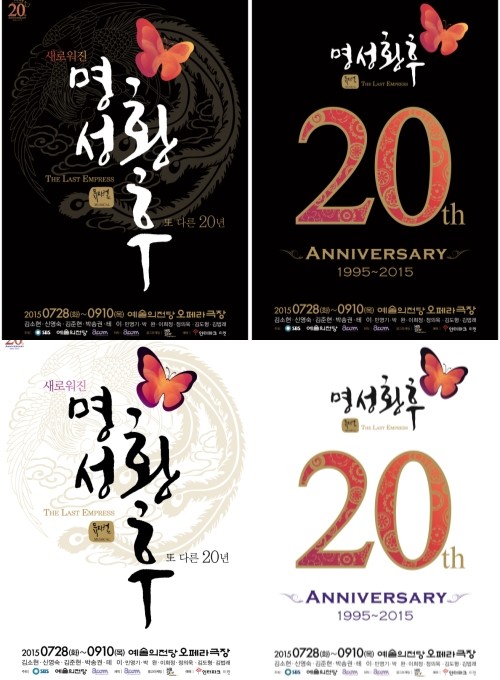 오는 7월 28일 개막을 앞둔 국민뮤지컬 '명성황후'가 '또 다른 20년'을 함께 할 새로운 포스터를 공개하며 대대적인 작품 변신을 예고했다.1995년 초연 이후 뮤지컬 '명성황후' 포스터는 디테일한 부분에 조금씩 수정이 가해지며 변화되어 왔지만 명성황후를 이미지화 한 민화그림을 메인 상징물로 사용해 왔다.20주년 앰블럼과 함께 공개된 포스터에서는 그동안 메인 이미지로 사용되어 왔던 ‘명성황후 민화’가 사라지고, 검정색과 흰색 배경의 2종 포스터에 왕실을 상징하는 금빛 봉황 문양이 더해졌다.뮤지컬 '명성황후'의 새로운 캘리그라피, 그리고 '나비'가 상징물로 등장해 관심을 집중시킨다. 부드러우면서도 힘을 느낄 수 있는 캘리그라피와 함께 포스터가 전체적으로 심플해지고 상징화 된 것을 느낄 수 있다.제작사 에이콤인터내셔날은 "극의 엔딩장면에서 부르는 '백성이여 일어나라' 등에서 볼 수 있듯이 뮤지컬 '명성황후' 작품을 통해 나타내고자 하는 메시지는 '명성황후 사후 후손들의 번영과 행복'이라 할 수 있는 만큼 '희망'을 상징하는 나비를 포스터의 상징물로 활용하게 되었다"고 설명했다.이어 "나비문양은 조선왕실 여성들의 장신구 문양에도 즐겨 사용돼 왔던 것으로, 경기도 여주시 명성황후 동상의 이마 부분에 있는 나비문양의 장신구에서 1차적인 아이디어를 얻게 되었다. 업그레이드 작업이 진행 중인 작품 속에서도 나비가 새로운 상징물로 등장하게 된다"고 덧붙였다.한편, 뮤지컬 '명성황후' 20주년 기념공연은 7월28일부터 9월 10일까지 예술의전당 오페라극장에서 공연되며, 6월 11일 예술의전당 예매시스템(SAC티켓)과 인터파크 티켓을 통해 1차 티켓 오픈된다.또, 작품이 재탄생됨에 따라 7월28일부터 30일까지 3회 공연에 걸쳐 관객들이 프리뷰 할 수 있도록 할인된 가격(30%)의 관람 기회가 제공된다.[뮤지컬 '명성황후' 포스터, 사진=에이콤인터내셔날]