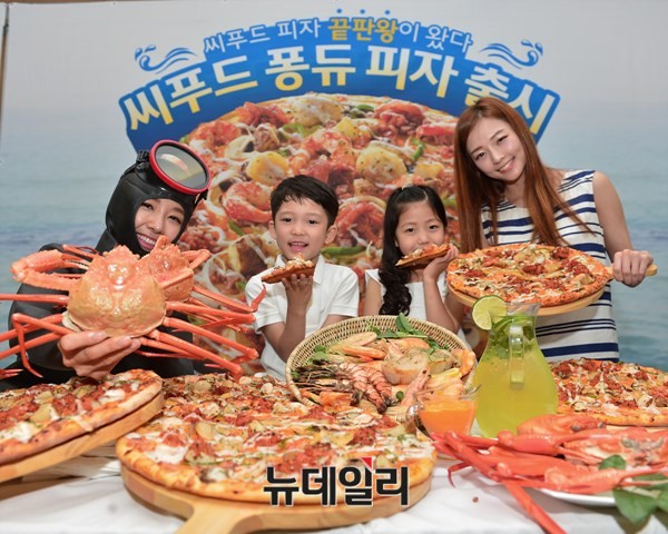• 도미노피자가 11일 오전 서울 세종문화회관 예인홀에서 신제품 [씨푸드 퐁듀 피자] 출시 기념행사를 진행했다. 이번에 출시된 [씨푸드 퐁듀 피자]는 체다치즈로 만든 퐁듀치즈소스에 홍게살, 새우, 통관자 등 씨푸드의 신선함이 어우러진 제품이다.