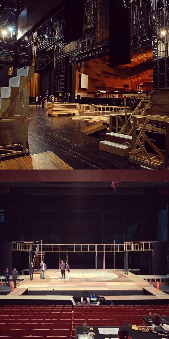 뮤지컬 '데스노트'가 공식 페이스북을 통해 연습용 간이 무대와 성남아트센터 셋업 사진을 공개했다.공개된 사진은 일반 공연장을 별도로 대관해 설치한 간이 무대임에도 불구하고 성남아트센터 본무대와 혼동할 만큼 현장감이 넘쳤다.일반적으로 배우들은 개막에 임박해서 테크 리허설(무대 설치를 마친 뒤 조명과 무대 장치, 음향 등을 확인하고 동선을 파악하는 리허설)을 통해 처음으로 무대를 밟아본다.하지만 뮤지컬 '데스노트'는 이례적으로 연습용 간이 무대를 설치함으로써 배우와 제작진이 최적의 환경 속에서 본격적인 관객맞이 준비에 총력을 다하고 있다는 후문이다.한편, 뮤지컬 '데스노트'는 2003년부터 슈에이샤 '주간소년 점프'에 연재된 만화 '데스노트'(원작 오바 츠구미, 만화 오바타 타케시)를 원작으로 이름이 적히면 죽는 노트라는 독특한 소재에서 출발한 작품이다.국내 최고의 뮤지컬 배우 홍광호, 김준수, 정선아, 박혜나, 강홍석 등이 출연하며, '전 회차 원캐스트'라는 파격적인 시도로 뜨거운 관심을 받고 있다. 오는 6월 19일 프리뷰를 시작으로 8월 9일까지 성남아트센터 오페라하우스에서 공연된다.[뮤지컬 '데스노트', 사진=씨제스컬쳐]