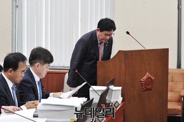 최경환 경제부총리 겸 기획재정부 장관이 15일 오전 서울 여의도 국회에서 열린 기획재정위원회 전체회의에서 업무보고에 앞서 의원들에게 인사를 하고 있다.