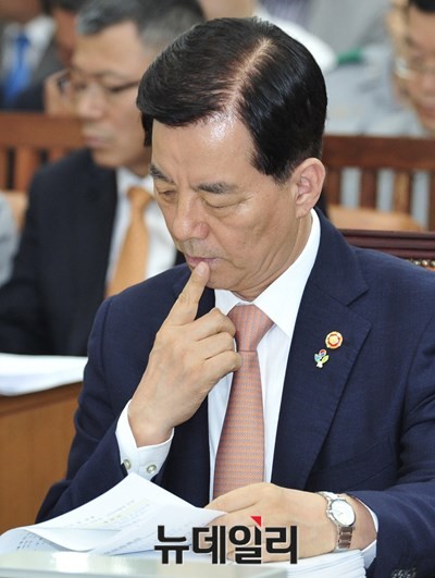 한민구 국방부장관이 16일 오후 서울 여의도 국회에서 열린 국방위원회 전체회의에 출석해 자료를 검토하고 있다.