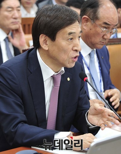 이주열 한국은행총재가 17일 오후 서울 여의도 국회에서 열린 기획재정위원회 회의에 참석해 의원들의 질문에 답하고 있다.