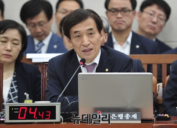 이주열 한국은행총재가 17일 오후 서울 여의도 국회에서 열린 기획재정위원회 회의에 참석해 의원들의 질문에 답하고 있다.