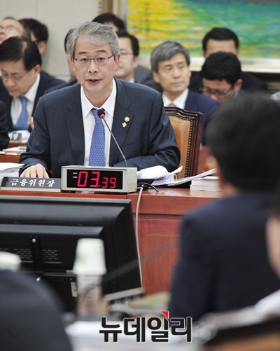 임종률 금융위원회 위원장이 17일 오후 서울 여의도 국회에서 열린 정무위원회 전체회의에 참석해 의원들의 질문에 답하고 있다.