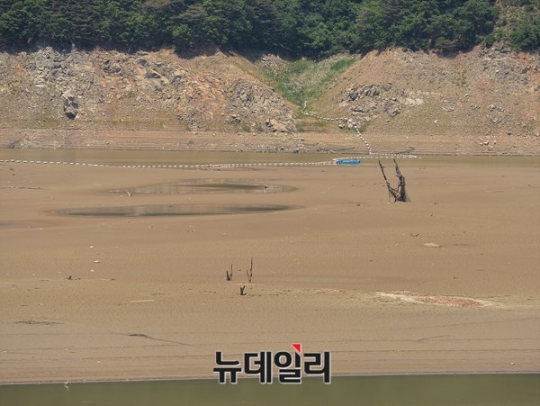 중부권 가뭄이 지속되는 가운데 19일(오전 7시 현재) 소양강댐 수위가 152.29m를 기록했다.강원 인제에서 양구 방향으로 38선로를 따라가면 소양강댐 건설로 수몰 된 상수내리와 하수내리가 나온다. 이번 가뭄으로 하수내리 성황당 나무도 38년 만에 앙상하게 남은 모습을 드러냈다. 소양호를 오가던 배도 발이 묶였다. 소양강에 던져진 어구도 강바닥에 아무렇게나 던져져 있다.인제군 남면 하수내리의 성황당나무는 1978년 가뭄에 소양강댐 수위가 151.93m로 내려갔을 때 잠시 모습을 보인 후 38년에 다시 모습을 보였다. 인근 지역인 속초시는 지난 17일 부터 야간시간에 제한급수에 들어간 상태다.(강원 인제=뉴데일리 정상윤 사진기자)