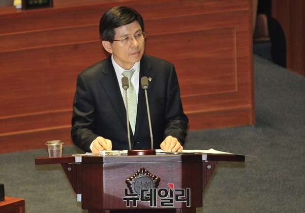 황교안 신임 국무총리가 19일 오전 서울 여의도 국회 본회의에서 열린 [외교-통일-안보 분야 대정부질문]에서 의원들의 질문에 답하고 있다.