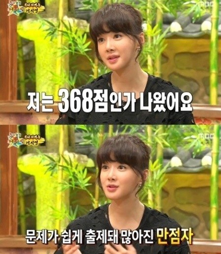 이시영은 지난 2013년 방송된 MBC '황금어장-무릎팍도사'에 출연해 수능시험에서 400점 만점에 368점을 받았던 반전 과거를 밝혔다.
