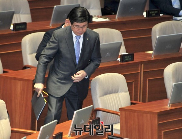황교안 국무총리가 23일 오후 국회 본회의장에서 진행된 교육사회문화 분야 대정부질문에서 의원들의 질문에 답하기 위해 단상으로 향하고 있다.
