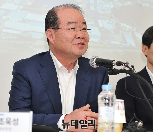 정성립 대우조선해양 사장이 25일 오전 서울 중구 대우조선해양 본사에서 열린 기자간담회에서 취재진의 질의에 답하고 있다.