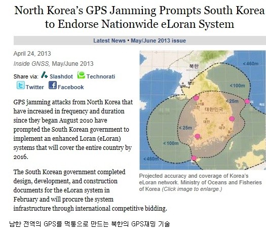 이 교란전파 발신지는 군사분계선과 인접한 해주와 개성 지역의 軍부대로 알려졌다. 교란전파가 5~10분 간격으로 간헐적 발사된 것으로 미뤄 북한이 해외에서 도입한 GPS 전파교란 장비를 시험한 것으로 추정된다.