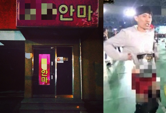 공개된 사진에는 'XX안마'라는 간판이 걸린 건물 입구가 담겨있다. 그의 퇴폐업소를 연상케하는 사진에 많은 네티즌들이 경악했다.