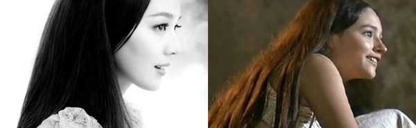 사진 속 올리비아핫세와 유진은 둘다 긴 머리를 늘어 뜨린 채 카메라를 응시하고 있는 모습이 도플갱어한듯 닮았다.