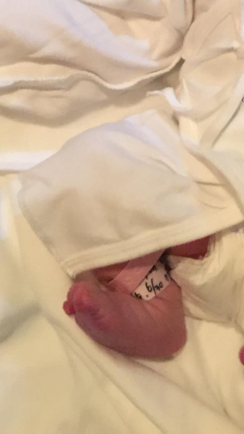사진 속 아기의 발 끝에 달린 표에는 '6/30'이라는 숫자가 적혀 있다.