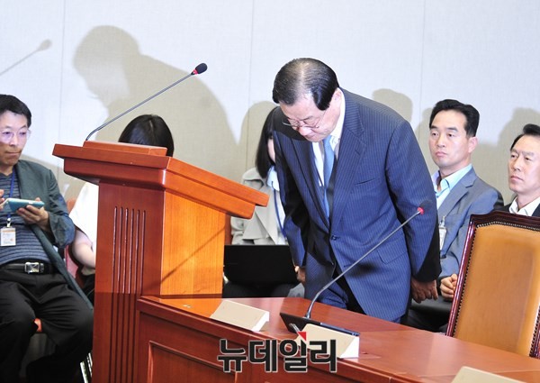 이병기 대통령 비서실장이 3일 오전 서울 여의도 국회에서 열린 운영위원회 전체회의에 출석해 인사를 하고 있다.