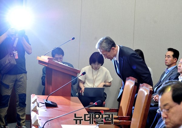 김관진 국가안보실장이 3일 오전 서울 여의도 국회에서 열린 운영위원회 전체회의에 출석해 의원들에게 인사를 하고 있다.
