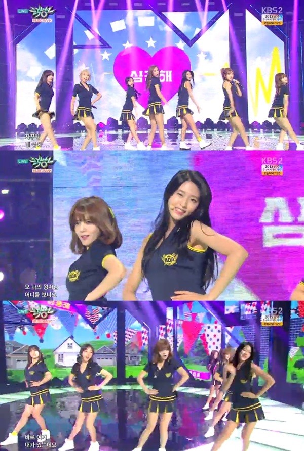 AOA는 3일 오후 방송된 KBS2 ‘뮤직뱅크’에 출연해 '심쿵해' 무대로 1위 후보에 올랐다.