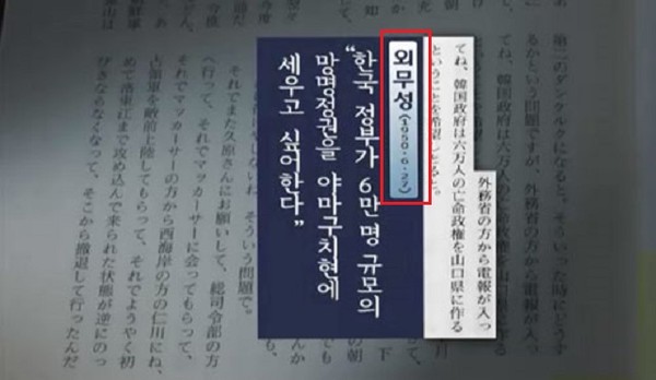 당시 `다나카 타쓰오' 야마구치현 지사는 한국전쟁 발생 이틀 뒤인 6월 27일, 외무성을 통해 '한국 정부가 6만 명의 망명정권을 야마구치현에 세우고 싶어한다'는 전보를 받았다고 적혀있습니다.