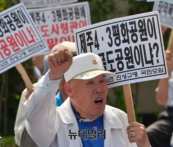 제주4.3사건진상규명국민모임(이하 4.3국민모임)과 애국단체가 6일 오후 정부서울청사 정문 앞에서 [제주4.3역사왜곡 중단]을 촉구하는 집회를 열고, [좌편향된 제주4.3평화공원의 전시물에 대한 수정]과 [4.3사건의 가해자인 남로당 폭도들의 위패 철거] 등을 요구하며 담당부처인 [행정자치부 공무원들을 규탄]하는 한편, 4.3평화공원을 좌편향시킨 [4.3중앙위원들의 교체]를 촉구했다.