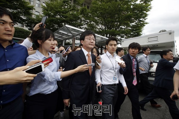 [포토] 기자회견 끝내고 떠나는 새누리당 유승민 원내대표
