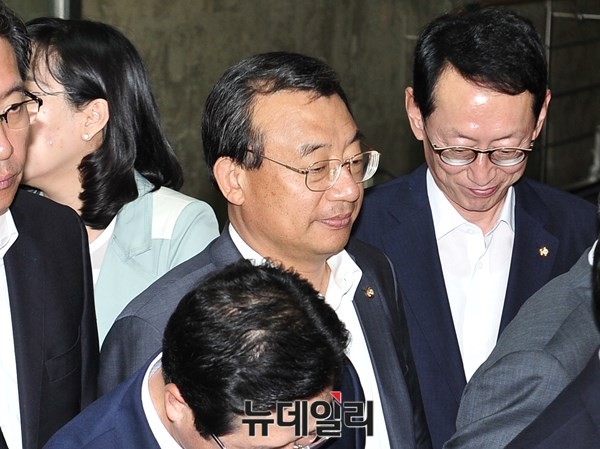 새누리당 이정현 의원이 8일 오후 서울 여의도 국회에서 [유승민 원내대표 거취에 관한 논의의 건]으로 소집된 새누리당 의원총회를 끝내고 밖으로 나오고 있다.