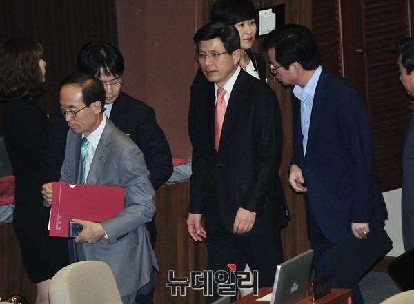 황교안 국무총리가 9일 오후 서울 여의도 국회 본회의장에서 열린 7월 임시회 본회의에서 추경 예산 관련 대통령의 시정연설을 대독하고 회의장을 떠나고 있다.