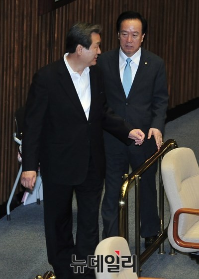 [포토] 대화 나누는 김무성 새누리당 대표와 이병석 전 부의장