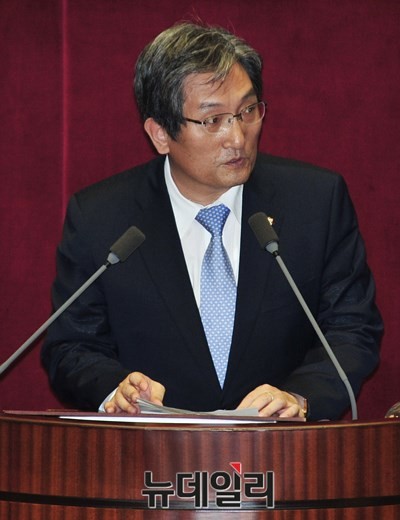 국회 산업통상자원위원장으로 선출된 새정치민주연합 노영민 의원이 9일 오후 서울 여의도 국회에서 열린 본회의에서 인사말을 하고 있다.