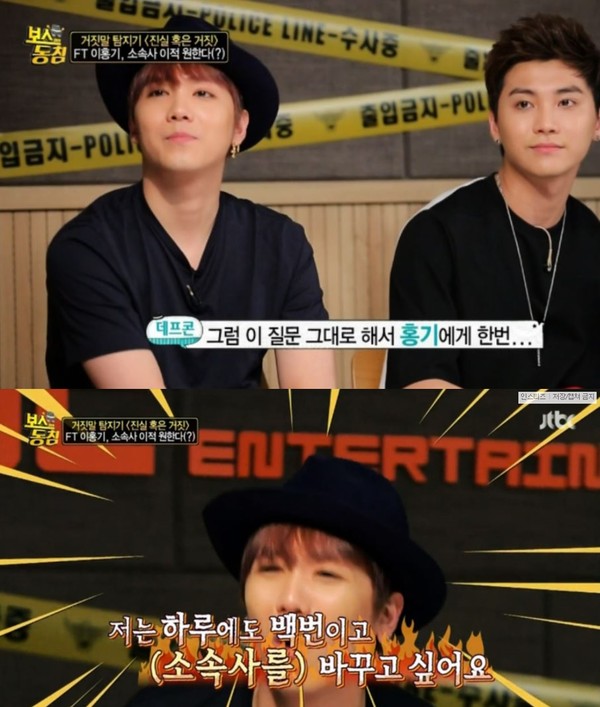 이홍기는 "FT아일랜드 재계약 계약서가 옛날 계약서 그대로다"라며 "원했던 계약사항도 있었는데 적극 수렴되지 않았다"고 토로했다.