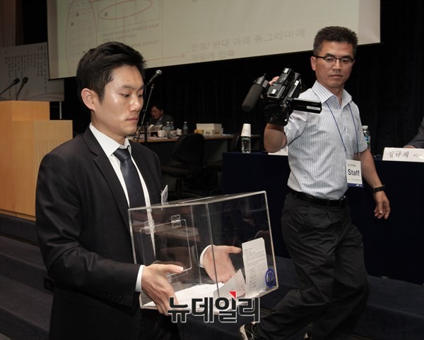 [포토] 삼성물산 임시주총, 옮겨지는 표결용지