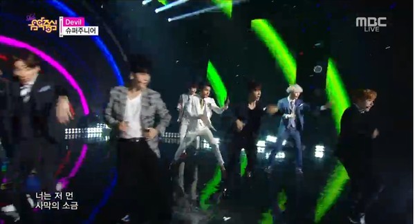 18일 오후 방송된 MBC '쇼! 음악중심'(이하 '음악중심')에서는 슈퍼주니어가 1년만에 컴백한 'Devil'로 카리스마 넘치는 퍼포먼스를 선보였다.