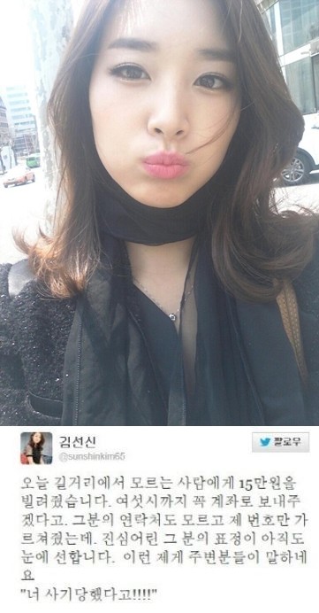 그는 과거 자신의 sns를 통해 "오늘 길거리에서 모르는 사람에게 15만원을 빌려줬습니다. 여섯시까지 꼭 계좌로 보내주겠다고. 그분의 연락처도 모르고 제 번호만 가르쳐줬는데. 진심어린 그 분의 표정이 아직도 눈에 선합니다. 이런 제게 주변분들이 말하네요 "너 사기당했다고!!!"" 라는 글을 올려 분노를 표출했다.
