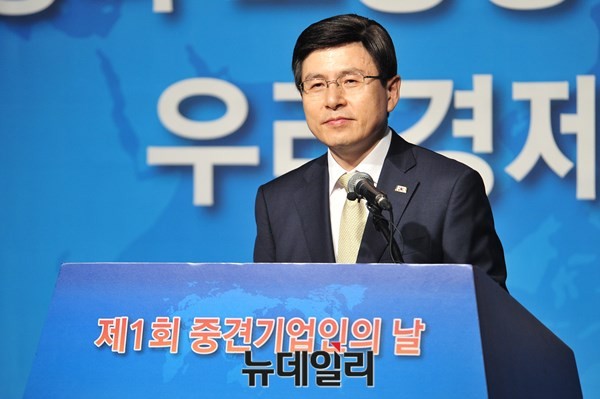 황교안 국무총리가 22일 오전 서울 여의도 63빌딩에서 열린 [제1회 중견기업인의 날] 기념식 에서 축사를 하고 있다.