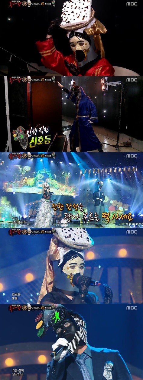 '복면가왕' 노래왕 퉁키를 꺾기 위해 '따끈따끈 떡사세요' 과 '인생직진 신호등'이 대결에 나섰다.26일 방송된 MBC 예능프로그램 '복면가욍'에서는 새로운 가왕 ‘노래왕 퉁키’에 대항할 8명의 복면가수가 등장해 듀엣곡 대결을 펼쳤다.이날 첫번째라운드에서는 '따끈따끈 떡사세요'과 '인생직진 신호등 '의 듀엣곡 이문세의 '빗속에서'로 무대를 선보였다. 특히 '따끈따끈 떡사세요'는 진한 감성과 애틋한 음색으로 시청자들의 귀를 사로잡았다.무대전 판정단과 패널들은 '인생직진 신호등'의 큰 키를 보며 '모델이 아니냐'는 추측을 했다. 노래가 시작되자 판정단과 패널들은 '두 사람 모두 연륜이 있는 것 같다' '꺾임이 남다르다' '트로트 가수인 것 같다' 등 여러가지 평을 하며 정체를 밝히려 애썼다.특히 김구라는 '인생직진 신호등'을 배우 도상우이 아니냐는 추측을 내놓았고. 지상렬은 가수 겸 배우 '구본승'라고 추측했다.'따끈따끈 떡사세요'의 정체에 대해서는 개그맨 '송은이', 개그맨 '박슬기'가 유력후보로 올랐다.투표결과 40대 59로 '따끈따끈 떡사세요'이 '인생직진 신호등' 에게 패배했다.한편 '복면가왕'은 매주 일요일 오후 4시 50분에 방송된다.