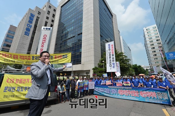김용인 부회장은 "오늘은 참으로 슬픈날이다. 목소리 내서 울고 싶은 날"이라며 "34도를 넘는 무더위에 우리 애국안보단체와 시민들이 국정의 한 축을 맡는 새정치민주연합의 행태를 규탄하는 집회를 열게 된 것은 참으로 슬프다"고 했다.
